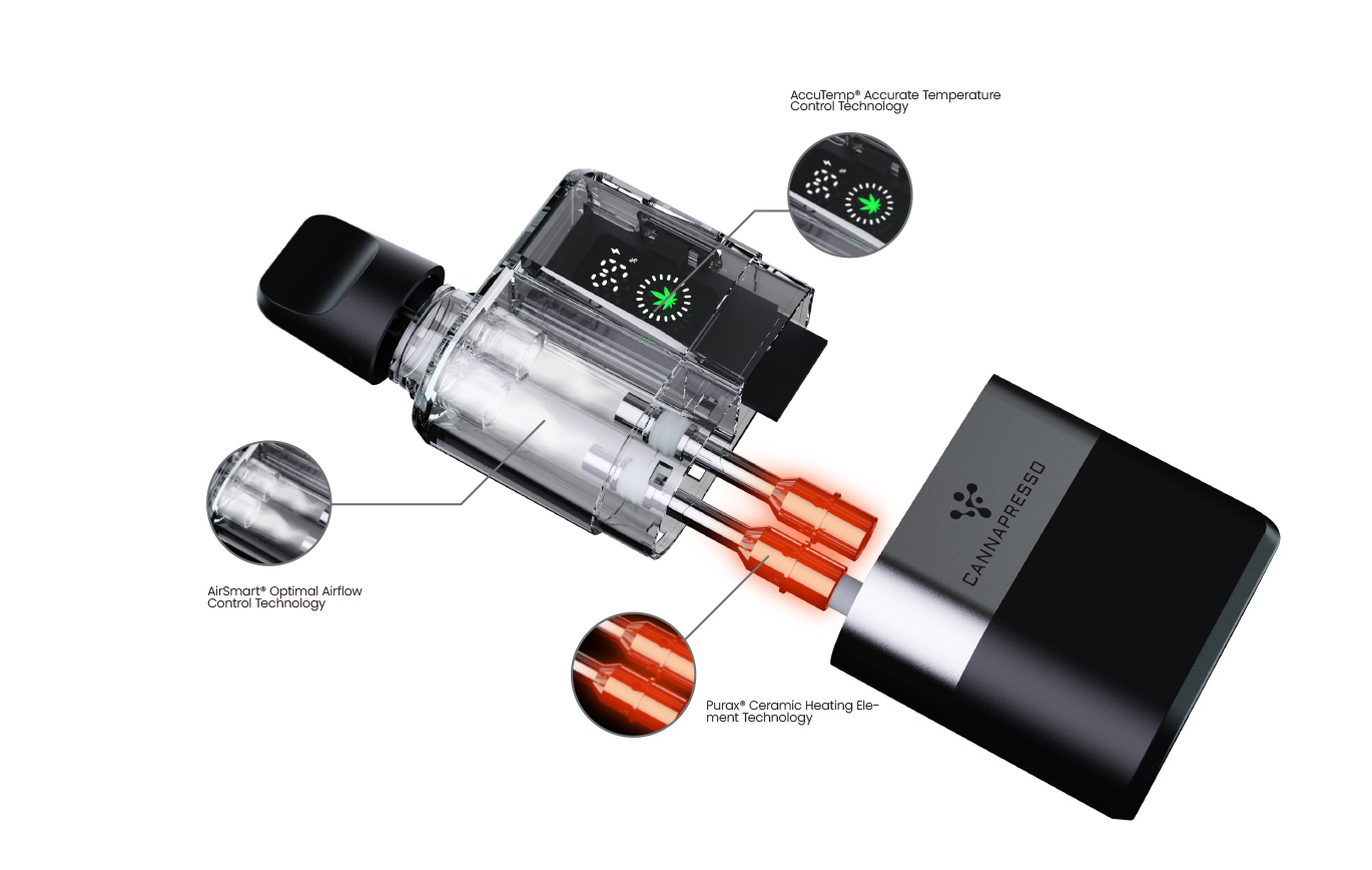 Cannapresso's mobile application leverages cutting-edge technologies such as Bluetooth or Near-Field Communication (NFC) to enable advanced, intelligent management of hemp vape devices. This app facilitates seamless interaction between the user's smartphone and the vape device, offering features like remote control, customization of device settings, real-time monitoring of usage, and tracking of battery and temperature levels.